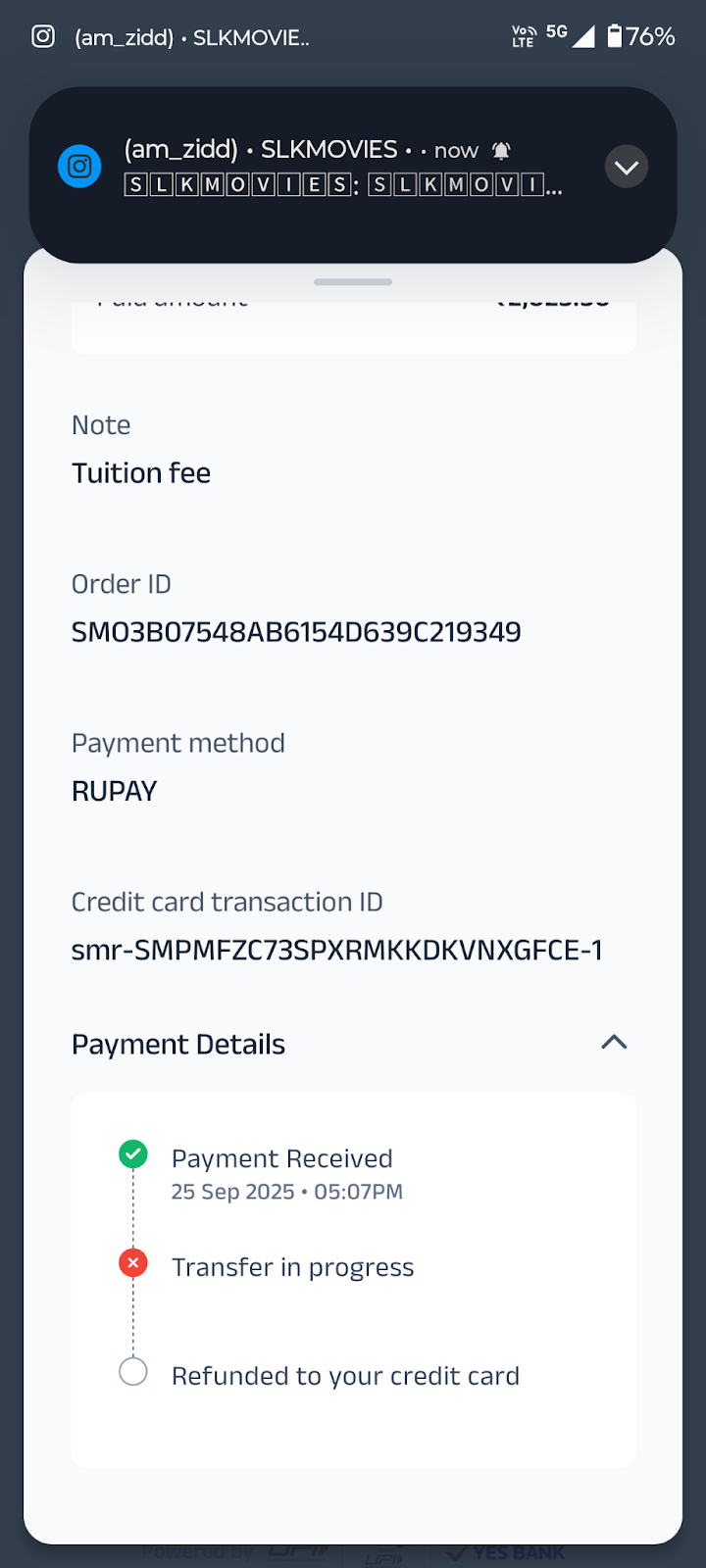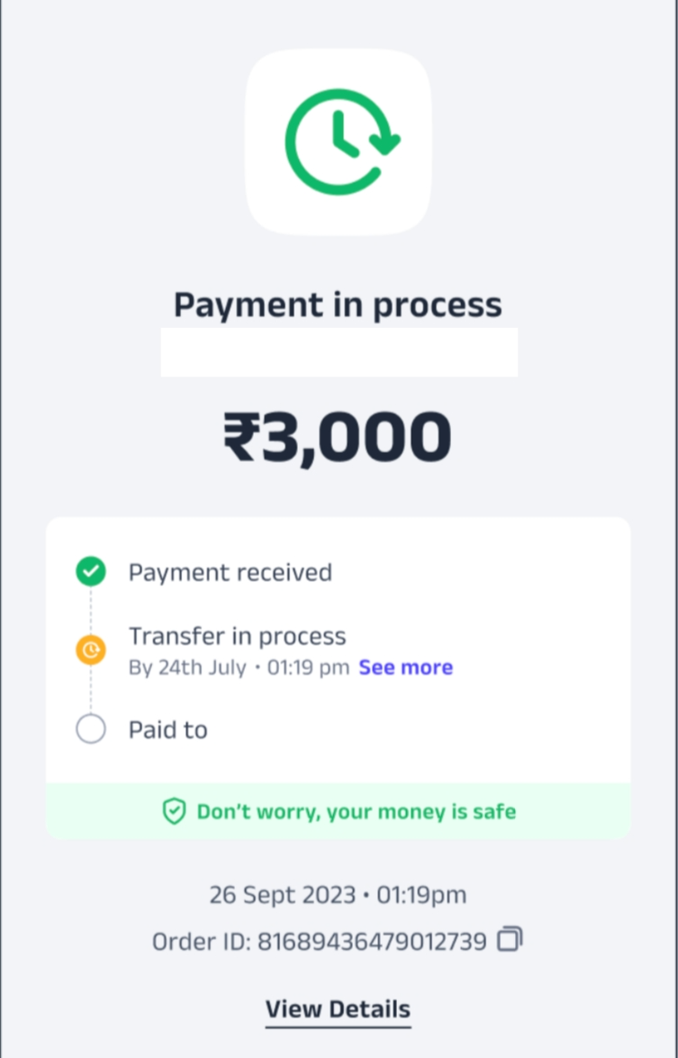 Thank you for your patience. This is to confirm that your payment of ₹[Amount] to [Recipient Name] is currently under a security review to ensure the safety of your funds.